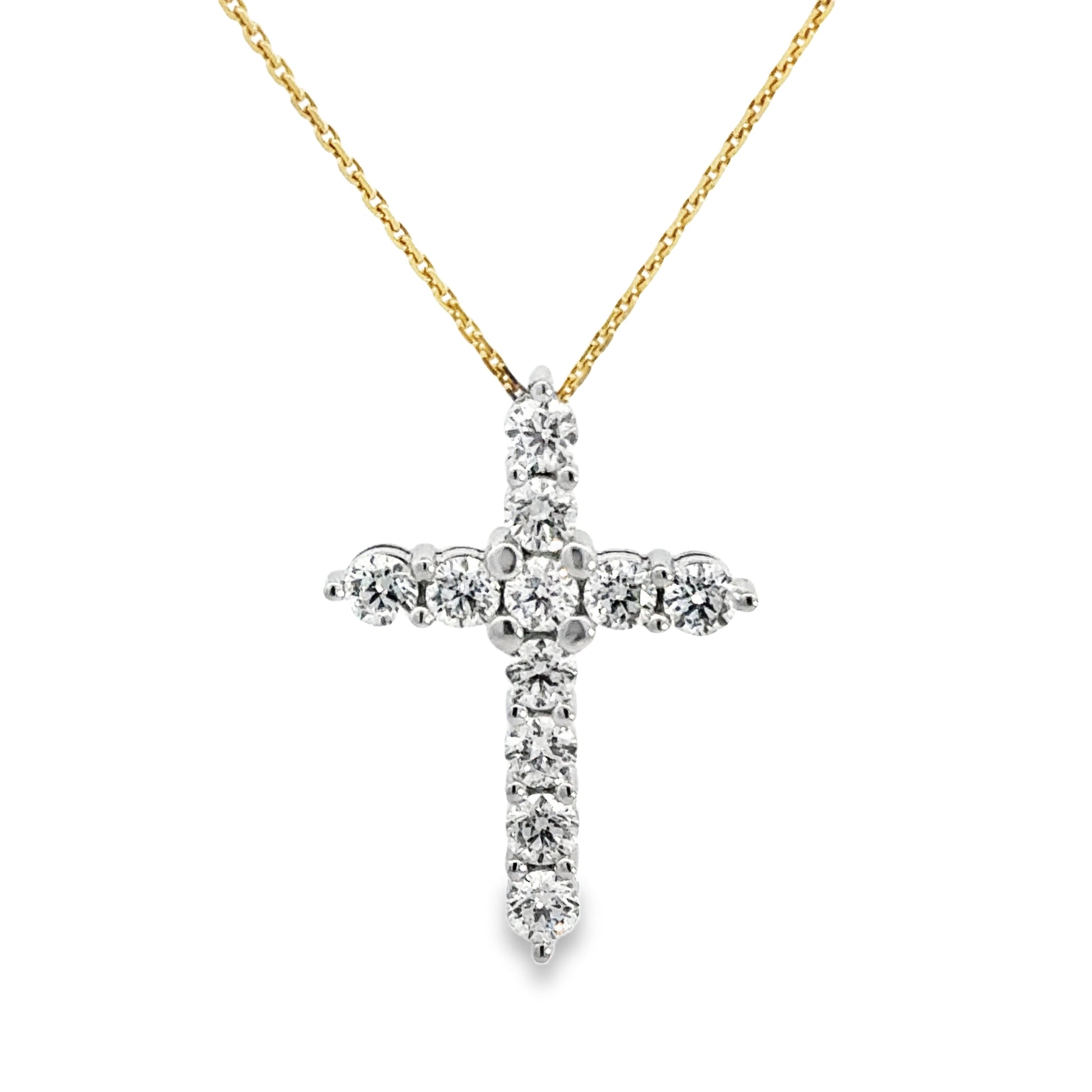 14K Two-Tone Diamond Cross Necklace - 2.20ct