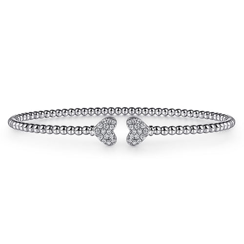 14K White Gold Bujukan Diamond Hearts Split Bangle