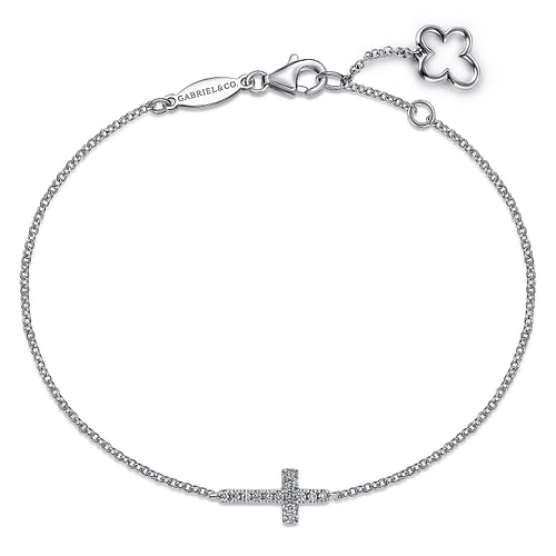 14K White Gold Diamond Cross Chain Bracelet