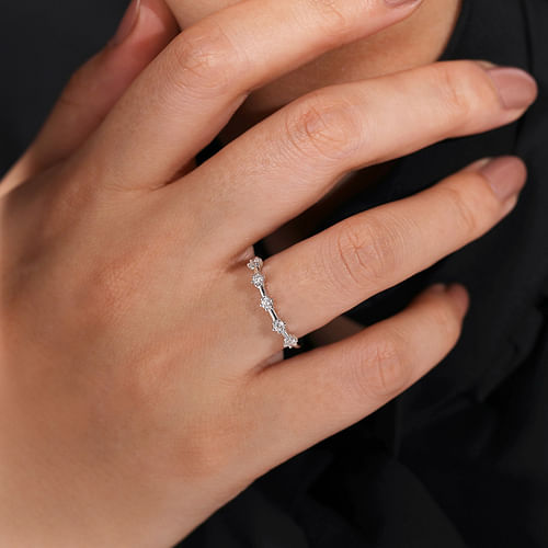 Elevate your style with the 14K White Gold Diamond Station Anniversary Band. The diamonds exhibit an average SI-2 internal clarity and G/H color, creating a brilliant and dazzling display of elegance.