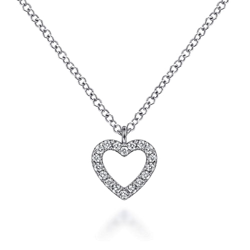 14K White Gold Open Heart Diamond Pendant Necklace