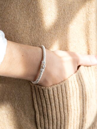 Weight: 2 Total Diamonds: 0.03 Total Carat Weight VAHAN's Trademark Moiré Beaded® pattern
