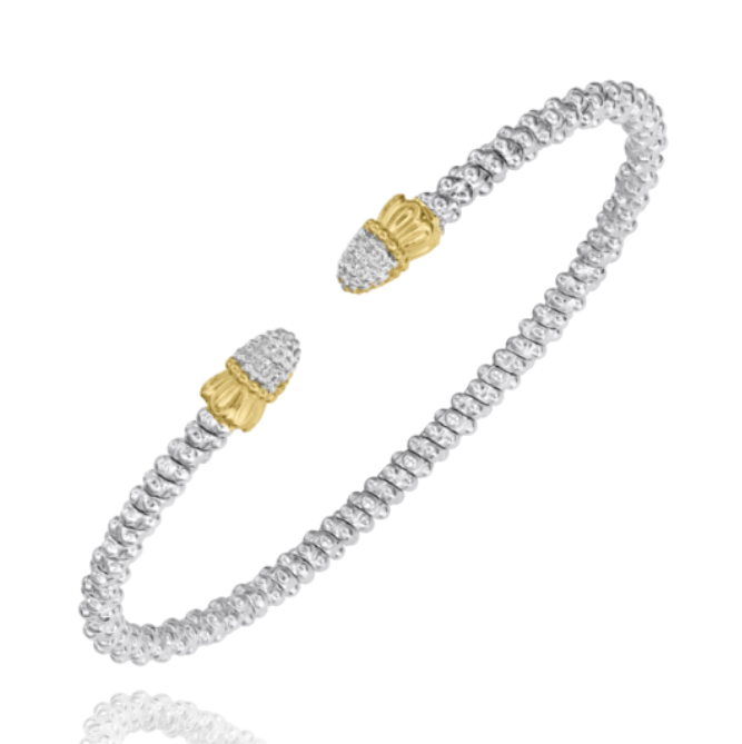 14K Yellow Gold and Sterling Silver Diamond Bangle Bracelet