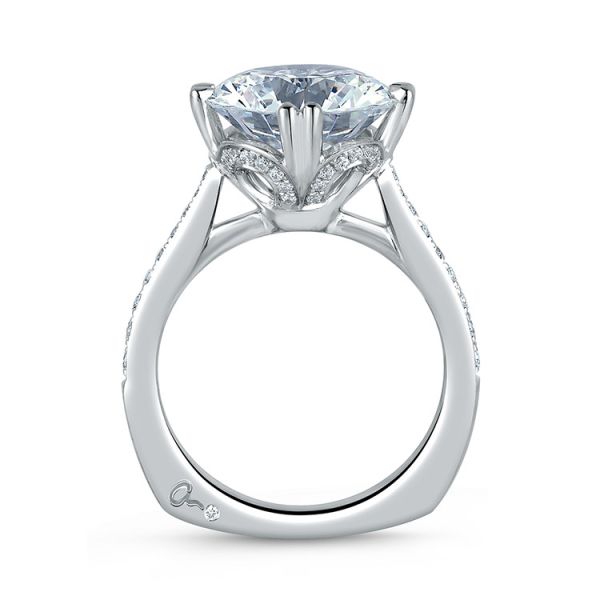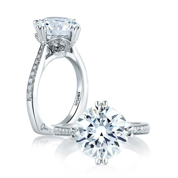 Experience the timeless elegance of the A.JAFFE 18 Karat White Gold Diamond Engagement Ring. With a total of 0.29 carats in round brilliant-cut diamonds, boasting an average SI-1 clarity and G color, this ring exudes sophistication. Note that the center diamond is not included in the price, allowing you to select a meaningful stone to complete this symbol of love and commitment.