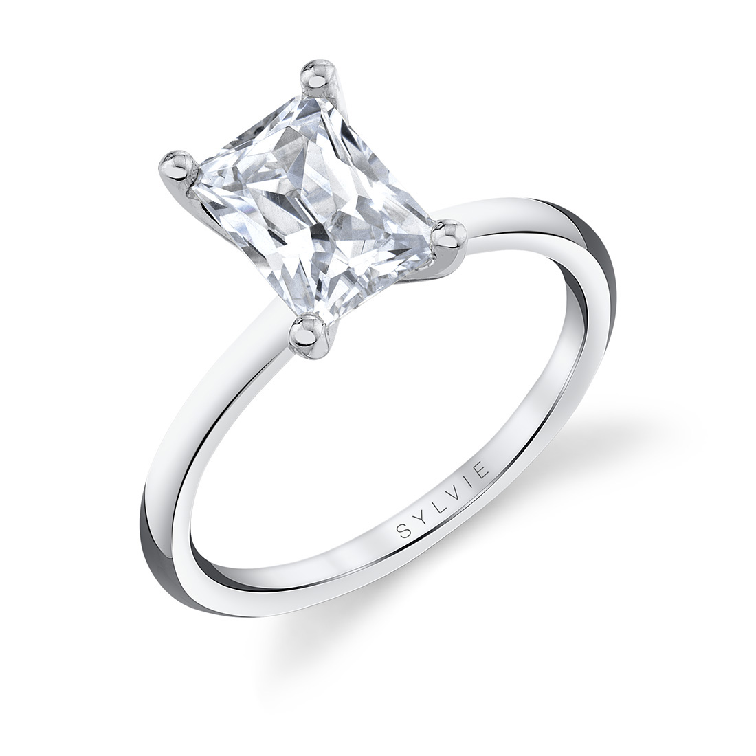This Amelia - 14K White Gold Solitare Engagement Ring made by Sylvie made for a 2 carat emerald cut stone.