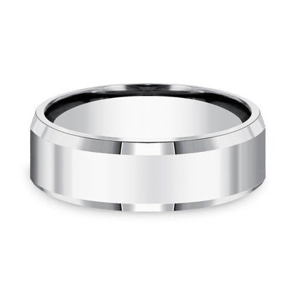 Elevate your style with our 7mm White Cobalt Comfort Fit Ring. This timeless piece features a high-polished finish on both the center and bevel edges, creating a striking contrast that exudes sophistication. Designed for comfort, this ring is perfect for daily wear and serves as a symbol of enduring commitment with a touch of refined elegance.