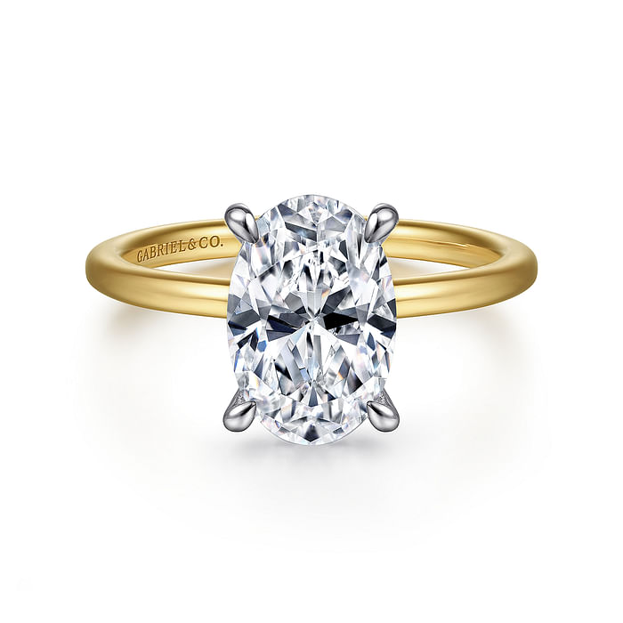 Cari - 14K White-Yellow Gold Hidden Halo Oval Diamond Engagement Ring