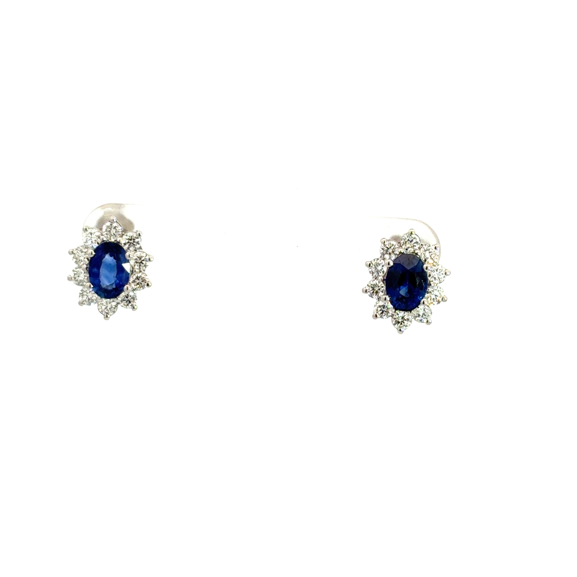 14K WHITE GOLD SAPPHIRE AND DIAMOND EARRINGS. 1.98 TWT SAPPHIRE .96 TWT DIAMONDS