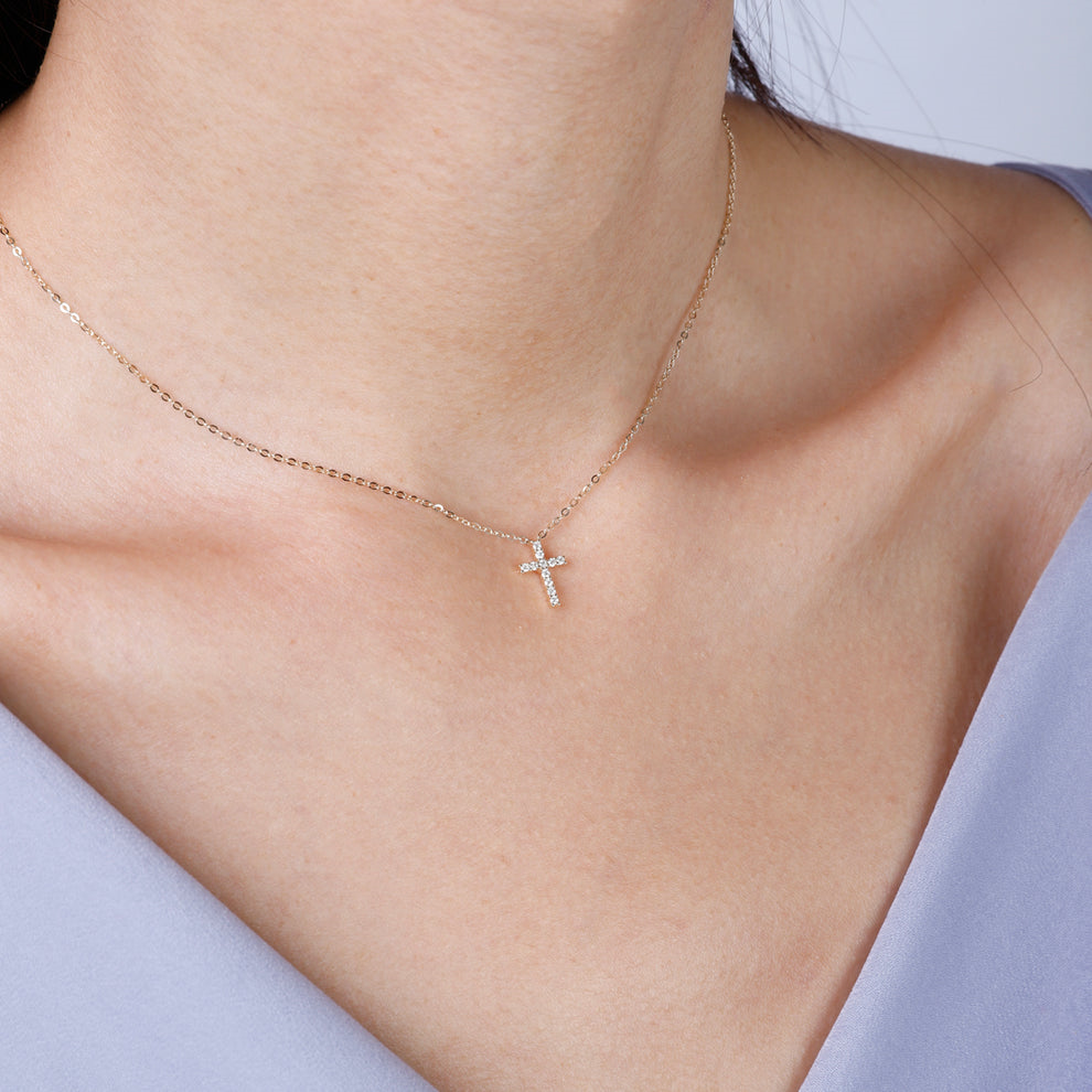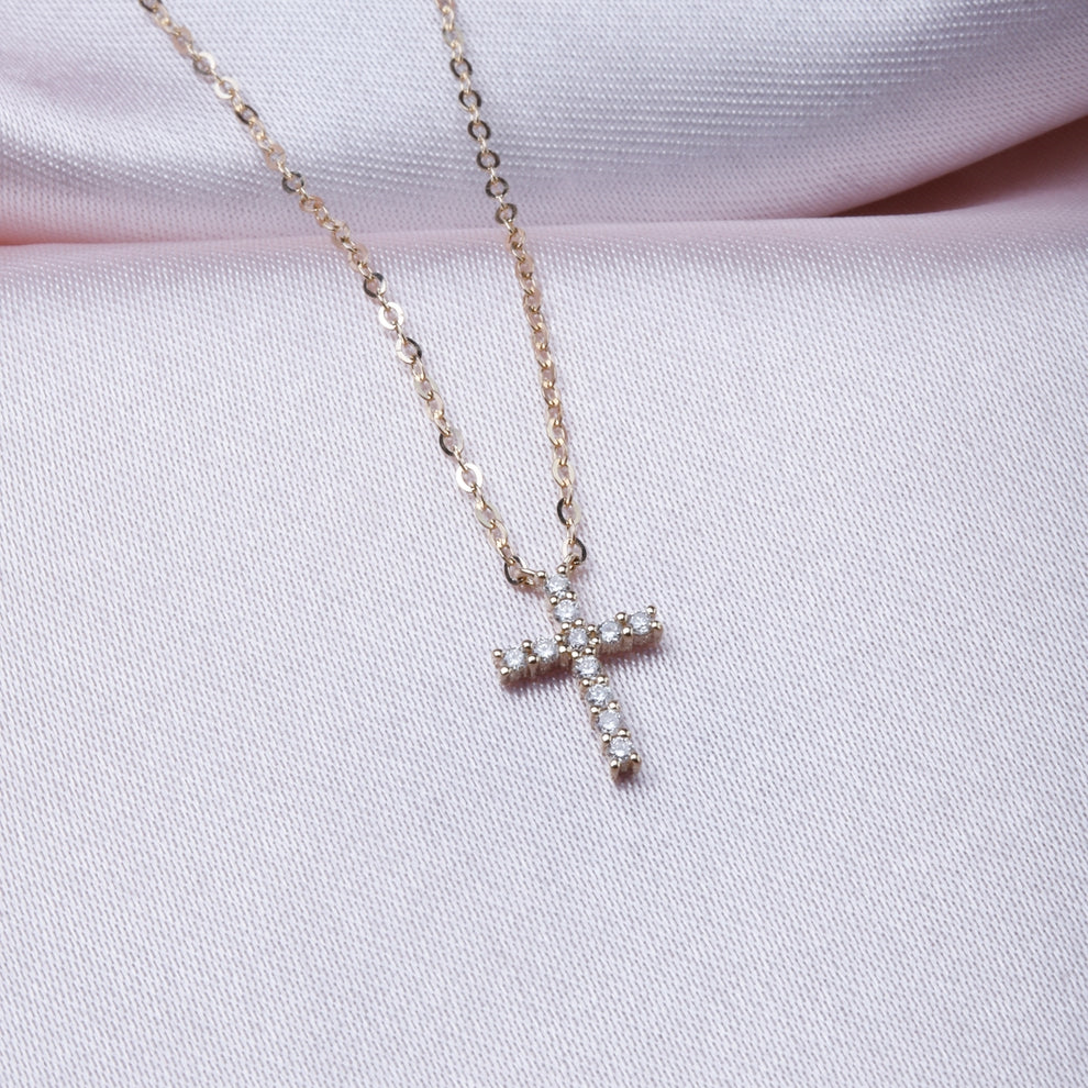 Experience the pinnacle of luxury with our Delicate Diamond Cross Necklace, crafted from stunning 14k gold. Dazzling diamonds create a radiant sparkle that is as elegant as it is understated, perfect for any occasion. This exquisite piece is a testament to your undeniable style and refinement, making it a treasure to wear and cherish for years to come.
