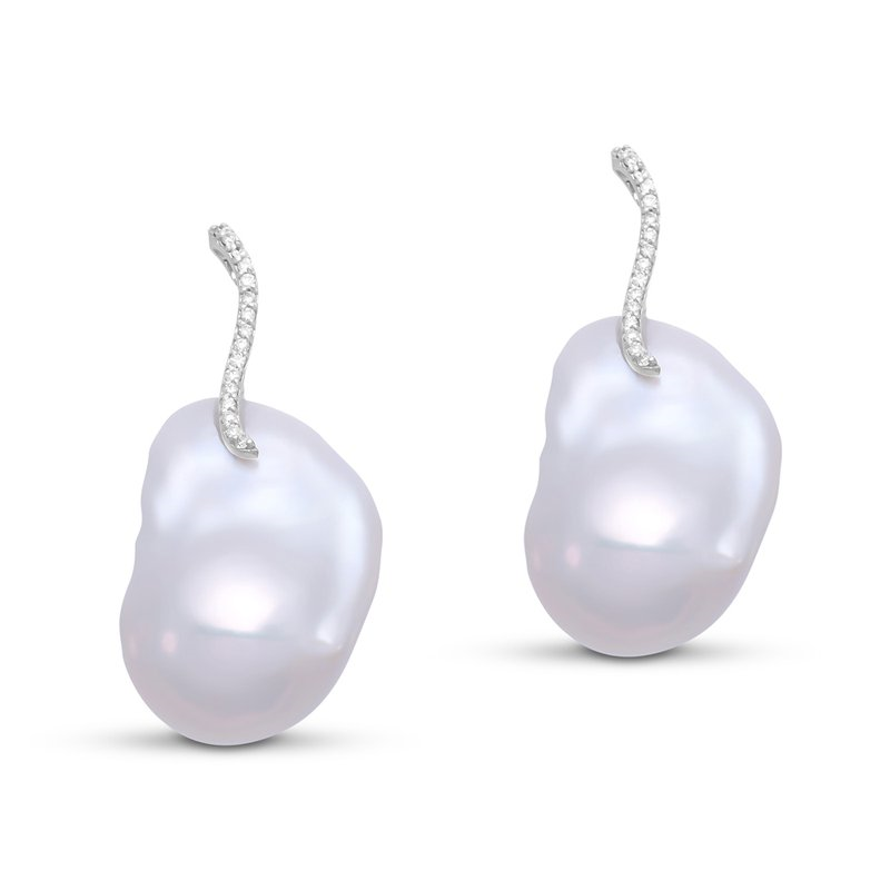 • Material: 14K White Gold, Diamonds, and White Freshwater Pearls