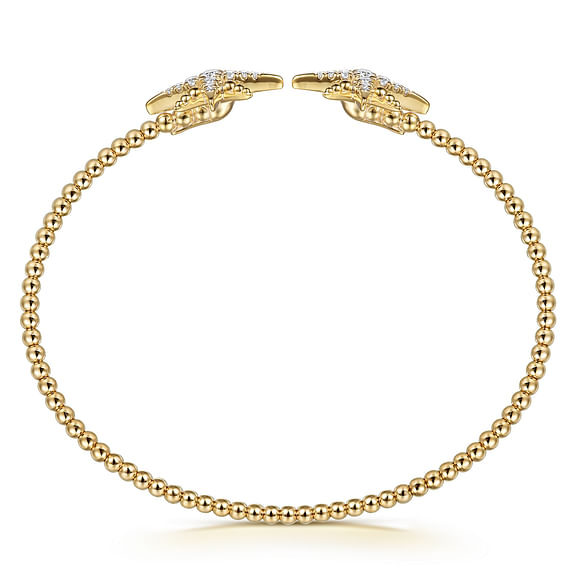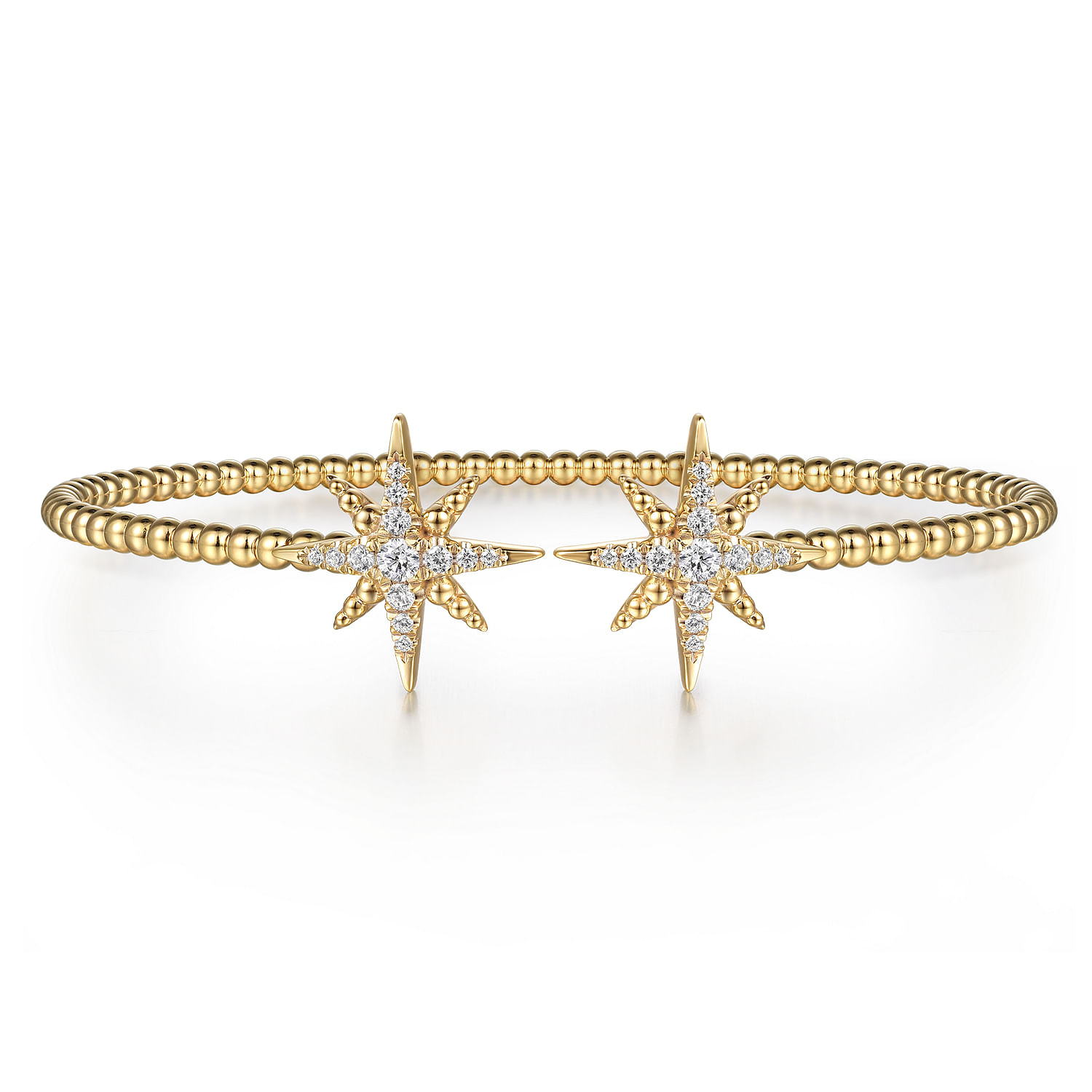 14K Yellow Gold Bujukan and Diamond Starburst Open Bangle Bracelet