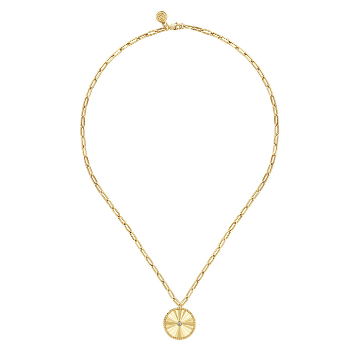Diamond Cut - 18" 14K Yellow Gold Textured Diamond Medallion Hollow Chain Necklace