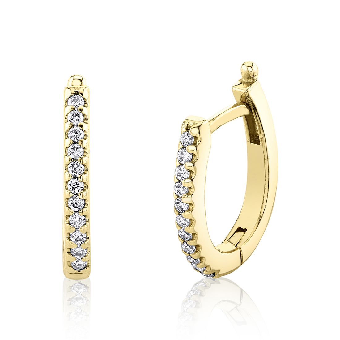 14K Yellow Gold U-Shaped Diamond Hoop Earrings