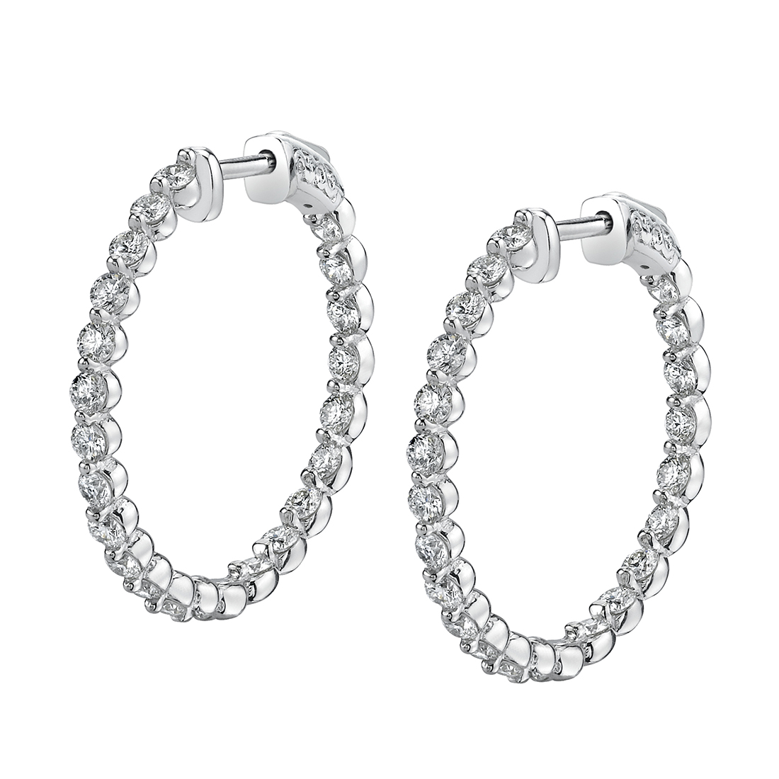 Add brilliance and modern elegance to your jewelry collection with these dazzling 14K White Gold Diamond Hoop Earrings. Featuring 42 round diamonds with a total carat weight of 1.30ct, these hoops radiate sophisticated sparkle. Each diamond is graded SI1 in clarity and G in color, offering exceptional brilliance and quality. Whether worn alone or paired with other pieces, these earrings are a timeless statement of refined luxury.