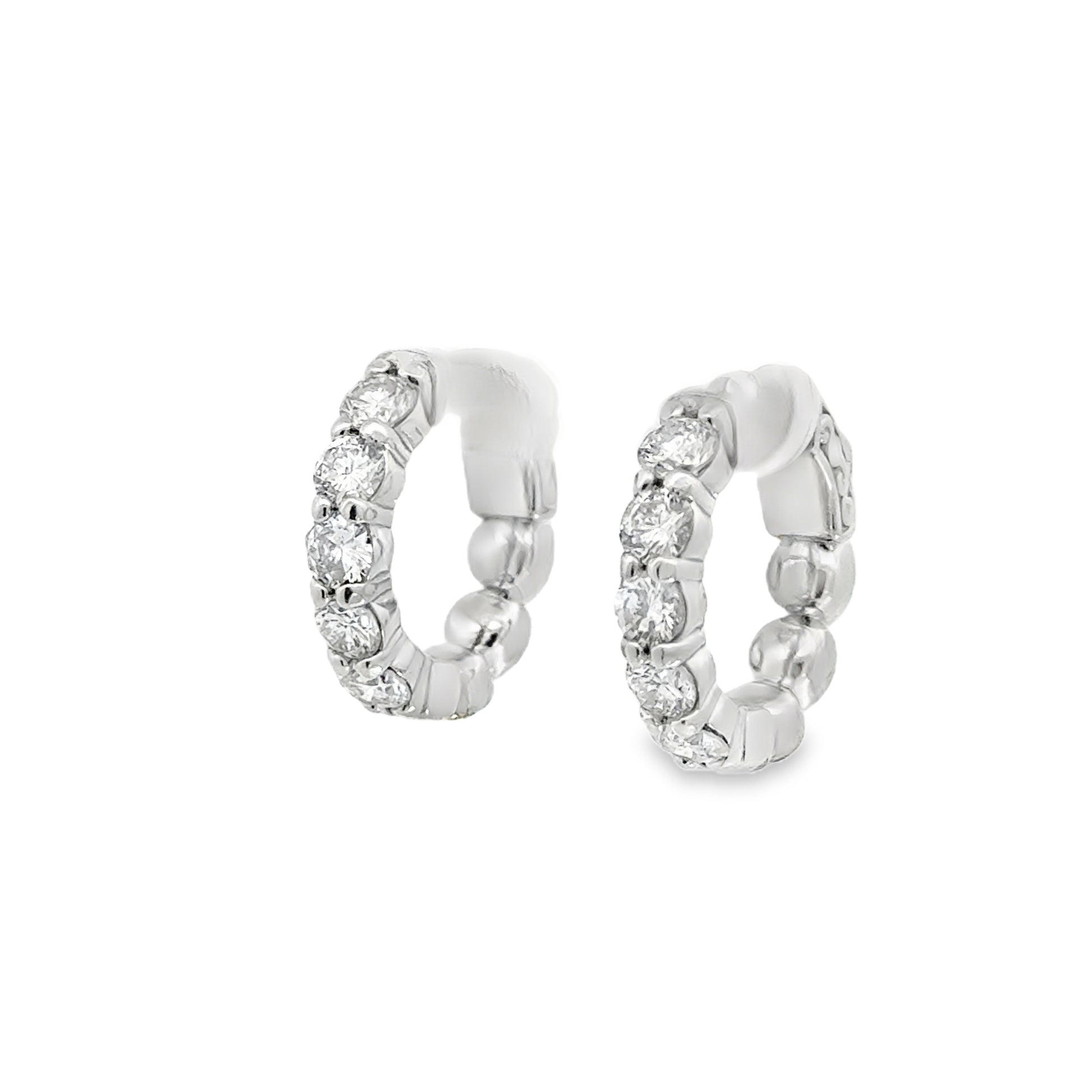 14K White Gold Diamond Huggie Earrings - 2.09 Carats