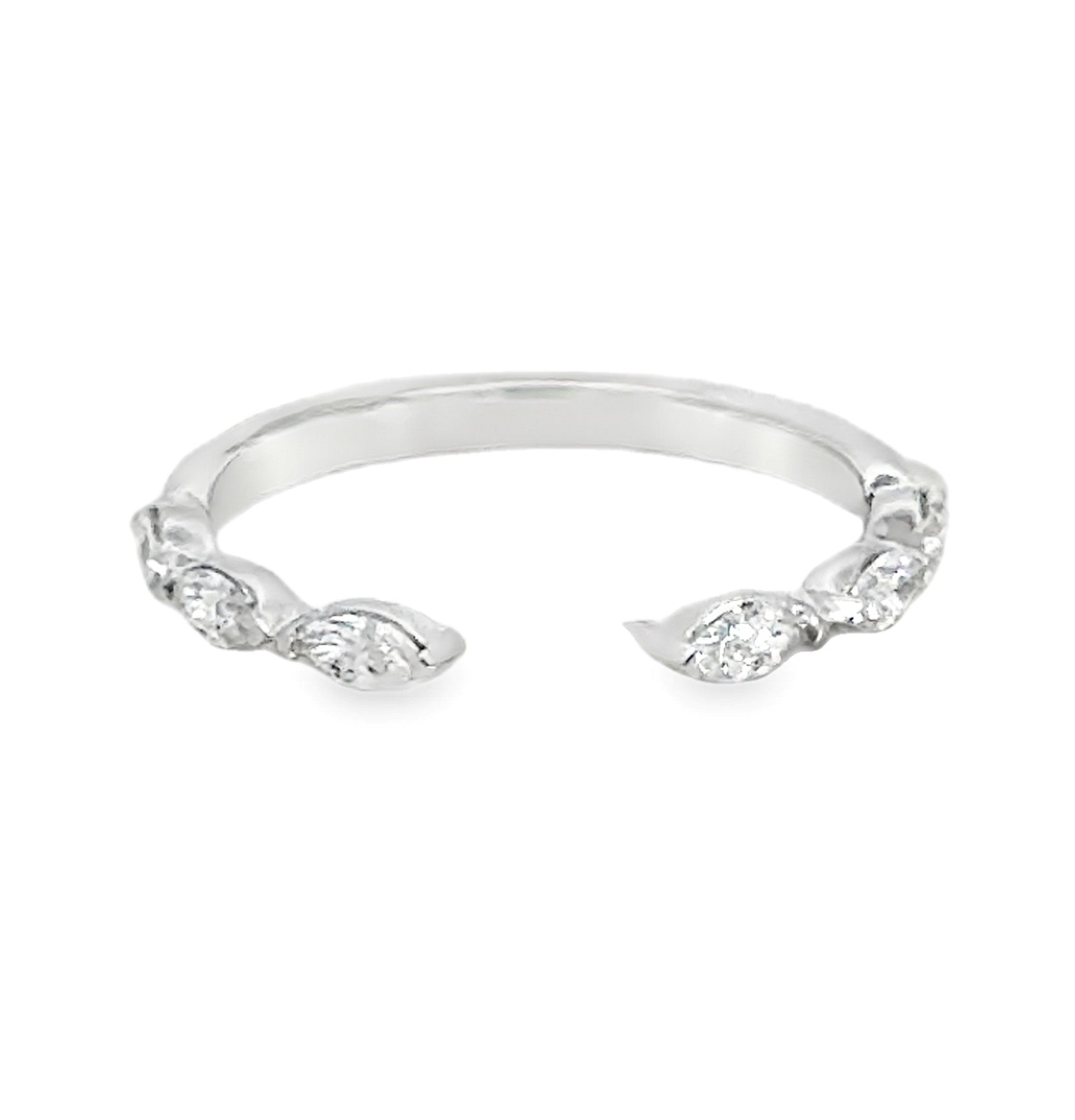 Elegant and distinctive, this 14K white gold diamond ring showcases a refined design featuring six marquise-shaped diamonds. Carefully selected for their brilliance, each diamond is graded SI1 in clarity and G in color, creating a graceful sparkle that catches the eye. With a total diamond weight of 0.36 carats, this ring offers a sleek, elongated silhouette that adds sophistication to any jewelry collection. A perfect piece for stacking or wearing solo with confidence and style.