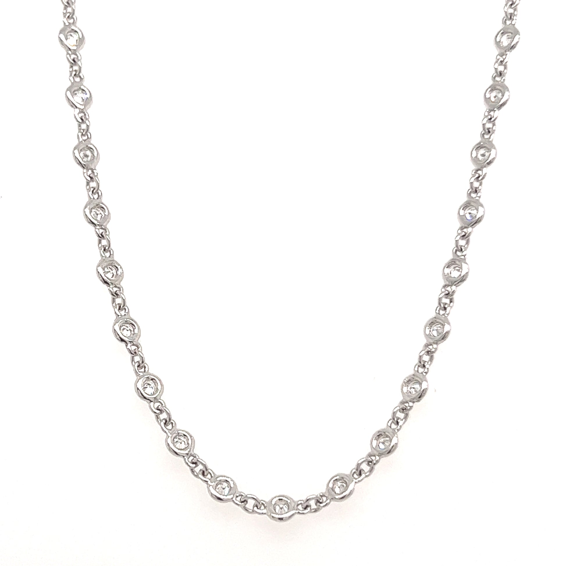 14K White Gold Diamond Station Necklace