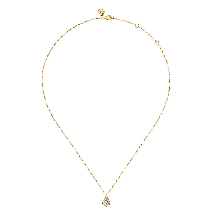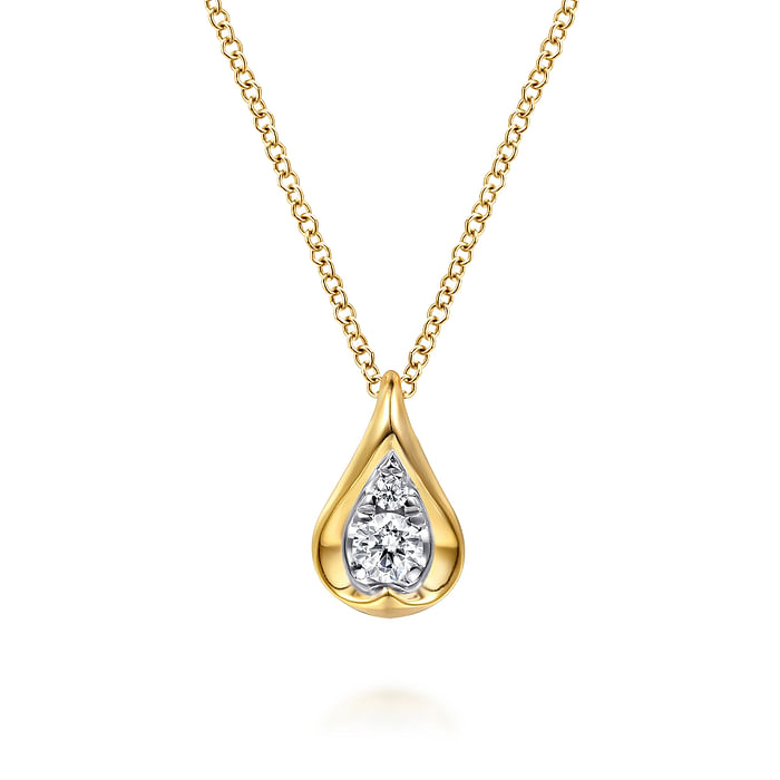 14K White and Yellow Gold Diamond Teardrop Pendant Necklace