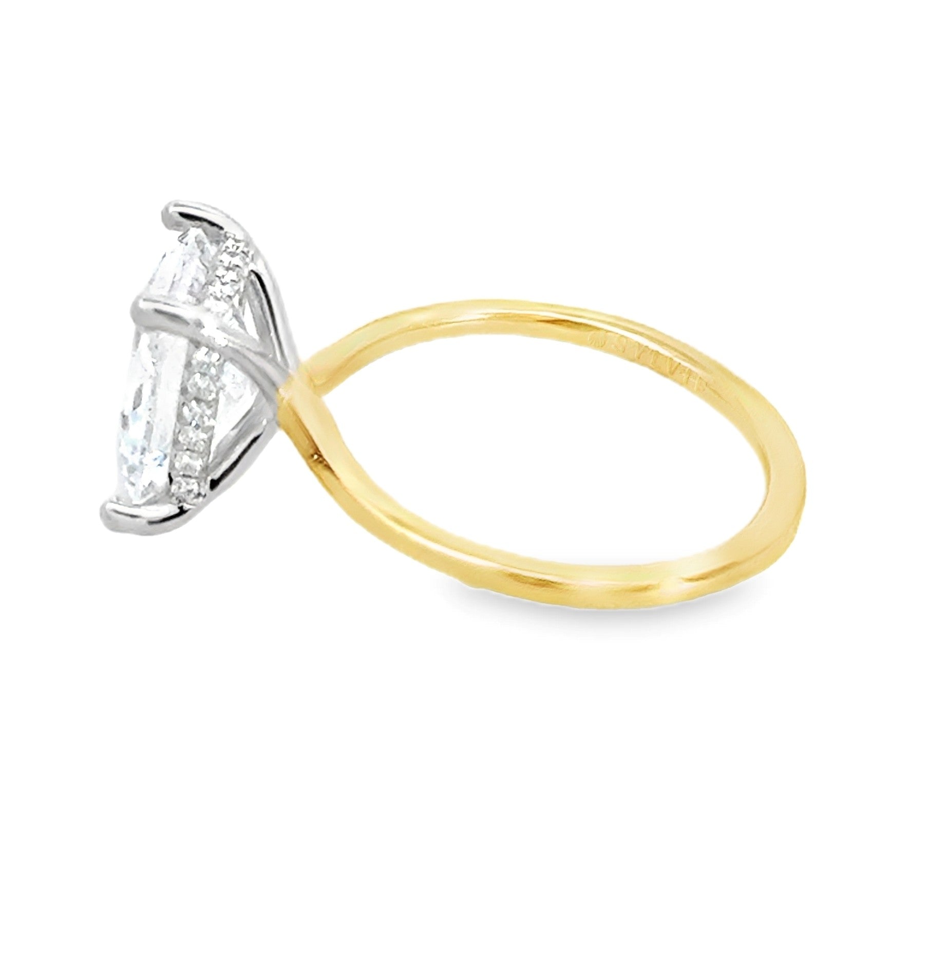 14K Two Tone Radiant Cut Diamond Engagement Ring with Accenting Diamonds