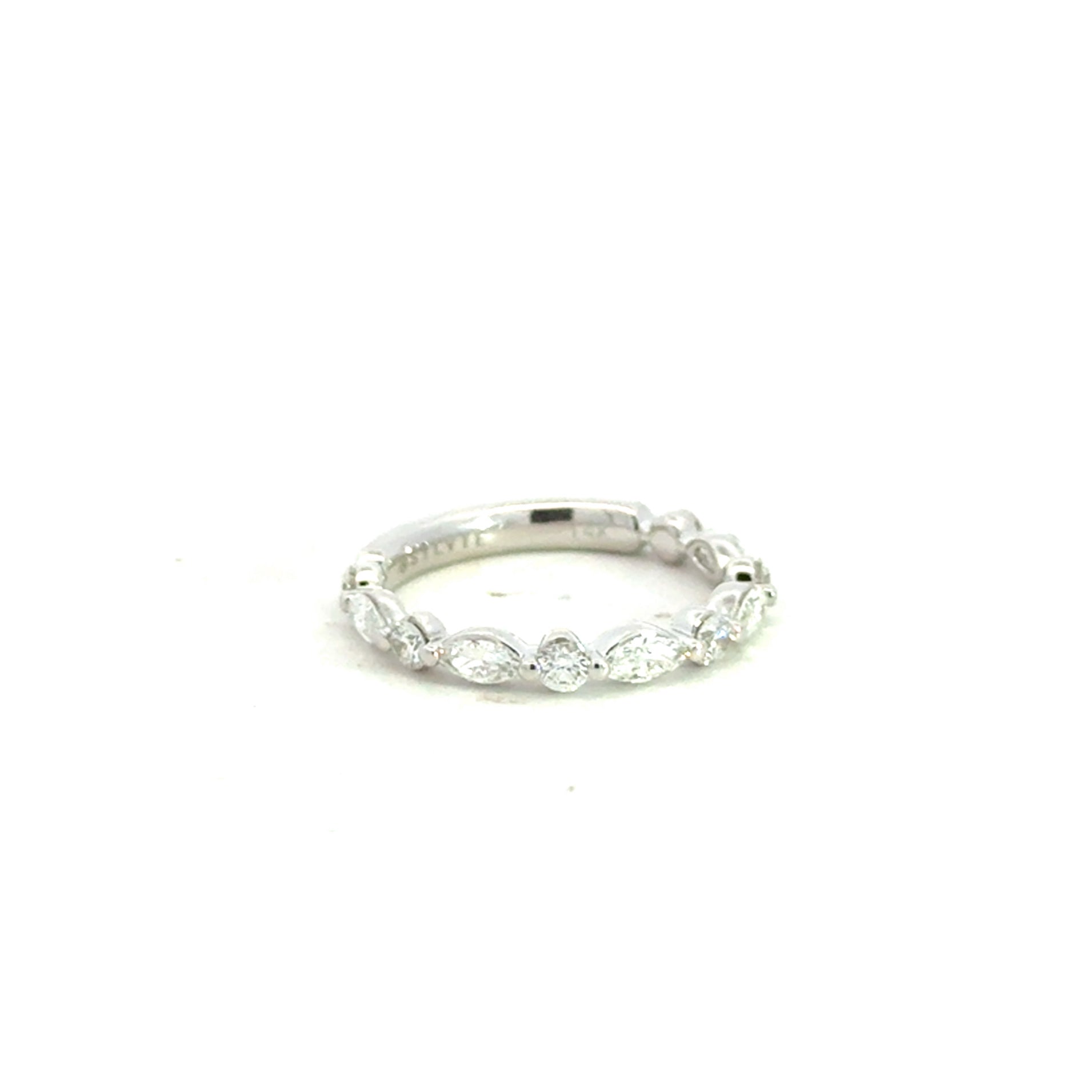 This elegant 14K white gold diamond wedding band showcases a beautiful combination of natural round and oval-shaped diamonds in a timeless design. The band features eleven diamonds with an average SI1 internal clarity and bright G color, offering exceptional sparkle and refined brilliance. With a total diamond weight of 0.81 carats, this sophisticated band makes a meaningful and enduring symbol of love.
