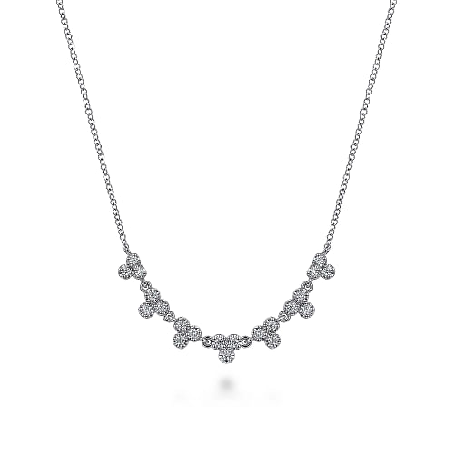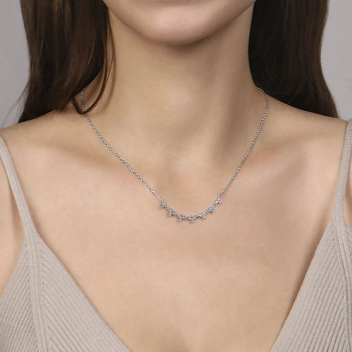 Part of our Gabriel Lusso ® Collection, this 14K white gold diamond droplet link necklace features 0.35cts of diamond clusters suspended from a chain link necklace. Arranged in groupings of 3 diamonds, each burst of sparkle captivates with a feminine geometry that expresses understated and effortless elegance. Slip it on and let the sparkling diamond constellations create a dazzling glitter effect around your neck, making you feel bright and confident.