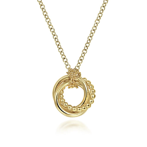 14K Yellow Gold Plain and Bujukan Beaded Interlocking Circles Pendant Necklace