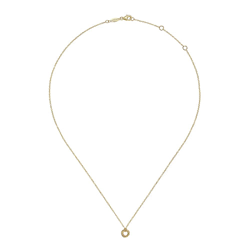 Enhance your style with the graceful beauty of the Gabriel & Co 14K Yellow Gold Plain and Bujukan Beaded Interlocking Circles Pendant Necklace. The harmonious blend of plain and bujukan beaded circles creates a visually captivating pendant, adding a touch of sophistication and modern flair to your neckline. It's a perfect expression of timeless elegance in a contemporary design.