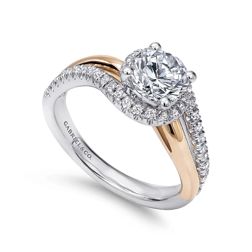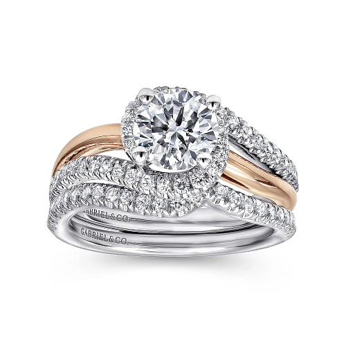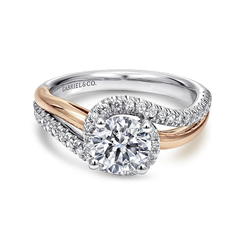 Everly - 14K White-Rose Gold Round Halo Diamond Engagement Ring