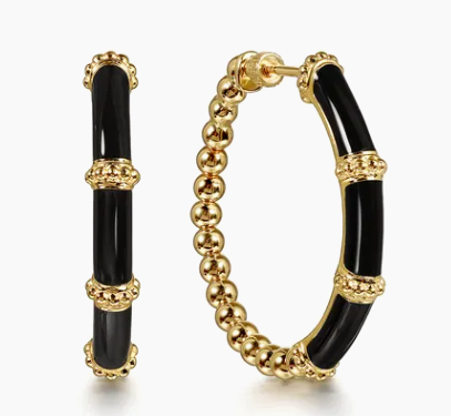 14K YELLOW GOLD BUJUKAN BEADS AND BAR SPLIT CLASSIC HOOP WITH BLACK ENAMEL