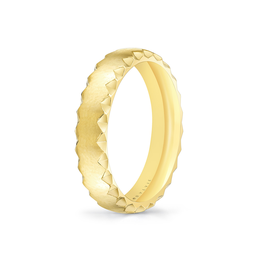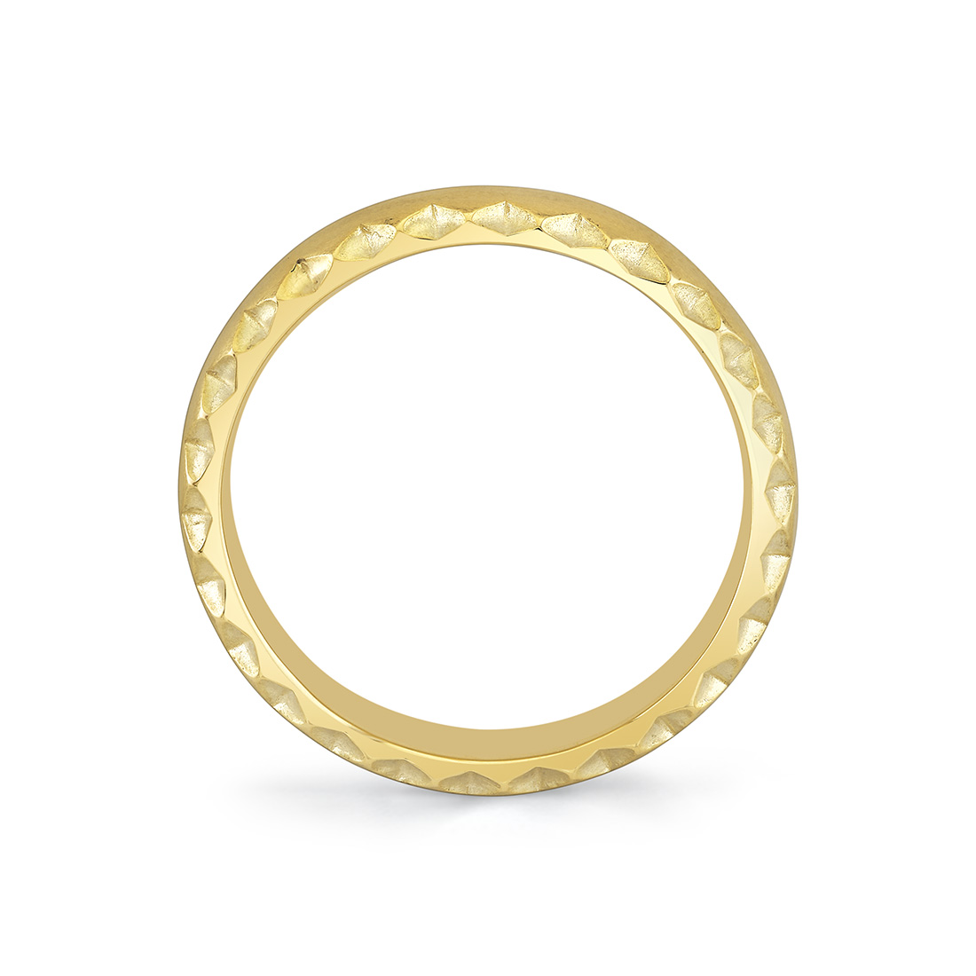 Crafted for the modern man, this 14K Yellow Gold 5mm Men's Band combines classic elegance with unique detailing. Featuring a brushed center with fluted shell edges, this band offers a refined, textured look that stands out subtly. Perfect for everyday wear or as a meaningful symbol of commitment, its durable design ensures lasting comfort and style.