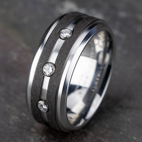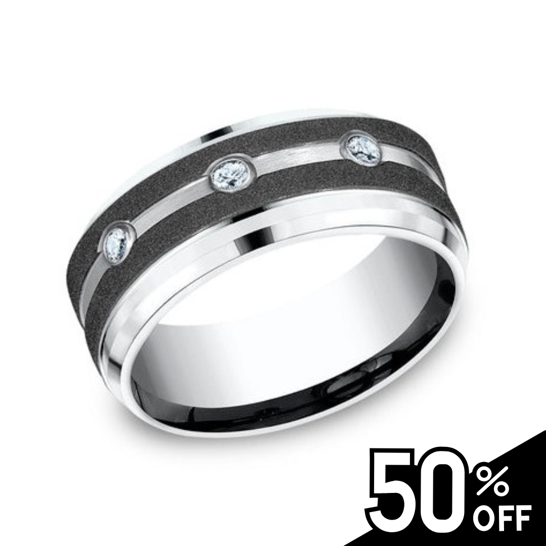 This elegant piece features graphite stripes with center diamonds and beveled edges, adding a touch of sophistication to your special occasion.