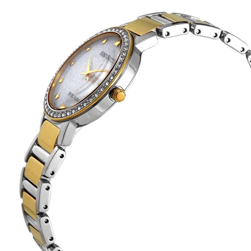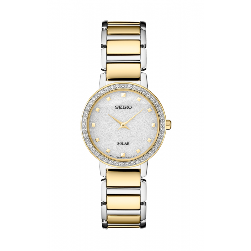 A sleek timepiece is a useful accessory for ladies. This grand timepiece can keep you organized and on-track while looking good. Seiko crafted a comfortable PVD-Finished Stainless Steel band to complement the case. An innovative Solar Powered movement powers every timepiece function. A 100 Ft (30 Meter) water resistance provides airtight protection.