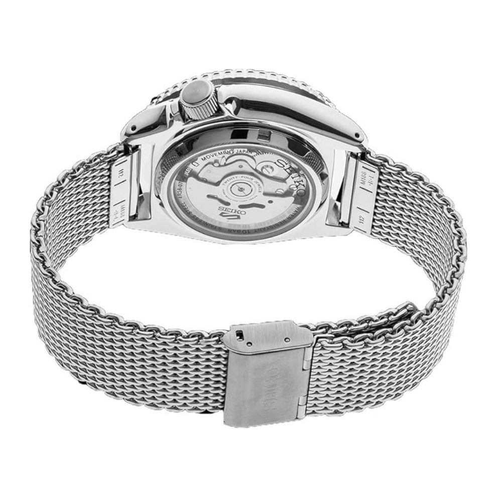 Show your style. Make your move. For over 50 years, Seiko 5 Sports has delivered consistently high levels of reliability, durability, and performance. For dependable timekeeping in your everyday life, this exceptional watch is powered by an automatic movement with a power reserve of approximately 41 hours and features a day/date calendar, LumiBrite hands and markers, and a see-through caseback. With a durable stainless steel case and contemporary mesh bracelet, and blue sunray dial framed by a blue rotating bezel, this versatile watch is 100 meter water resistant- perfect for your style no matter what your day has in store.