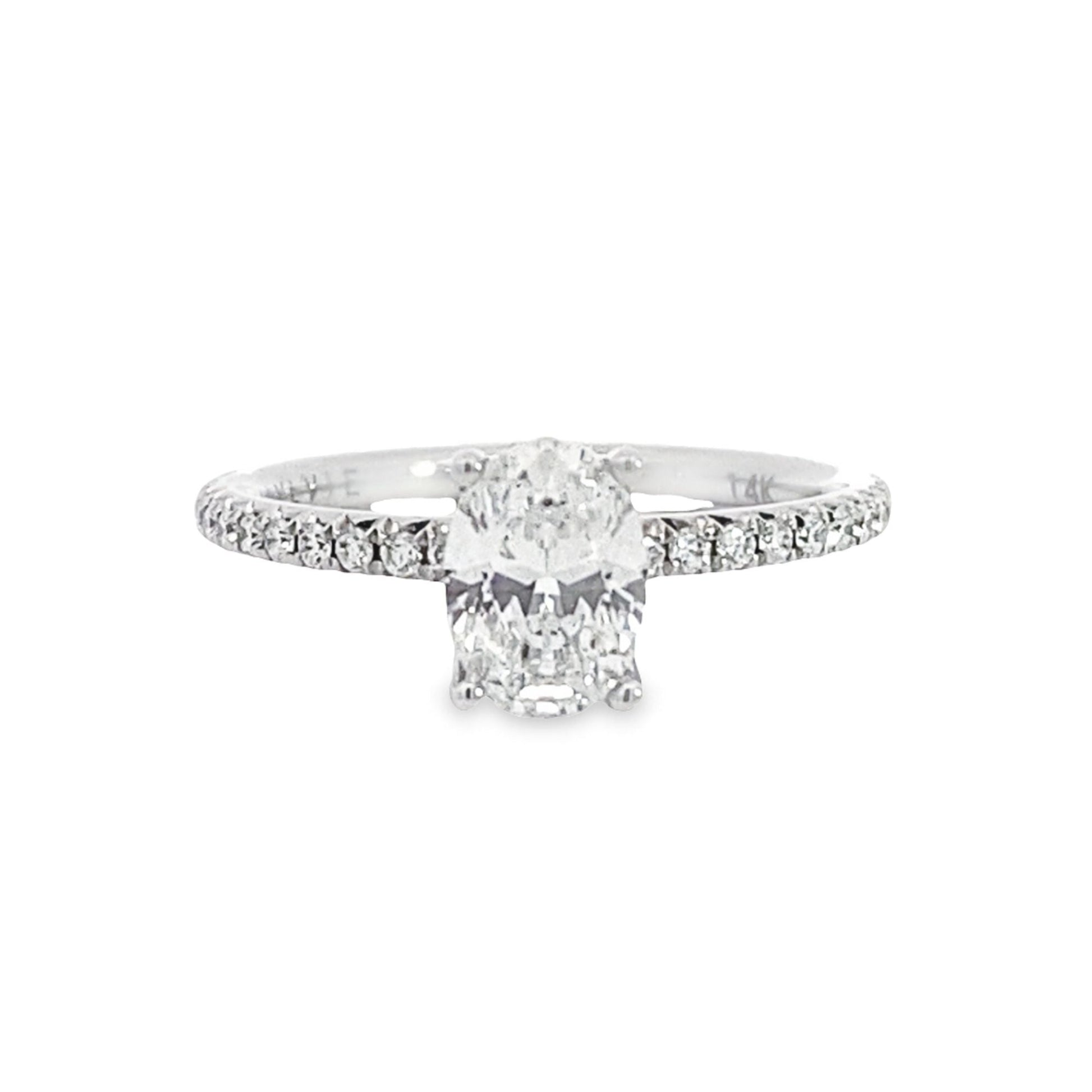 Elevate your love story with the timeless elegance of our 14K White Gold Oval Cut Diamond Engagement Ring, meticulously crafted by Sylvie. Adorned with 43 round brilliant cut diamonds totaling 0.22 carats, boasting SI-2 internal clarity and a radiant G color, this ring sets the stage for a 1.00 carat oval center stone (not included), creating a dazzling symbol of your everlasting commitment.